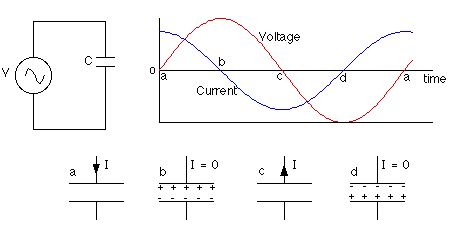 圖1 僅含電容和交流電源的電路及其工作原理。